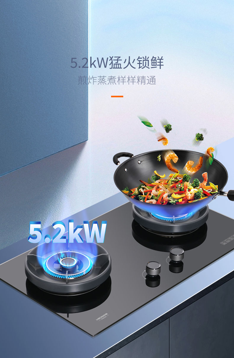 - 9.5.2KW猛火爆炒锅气足,激发食材色香味