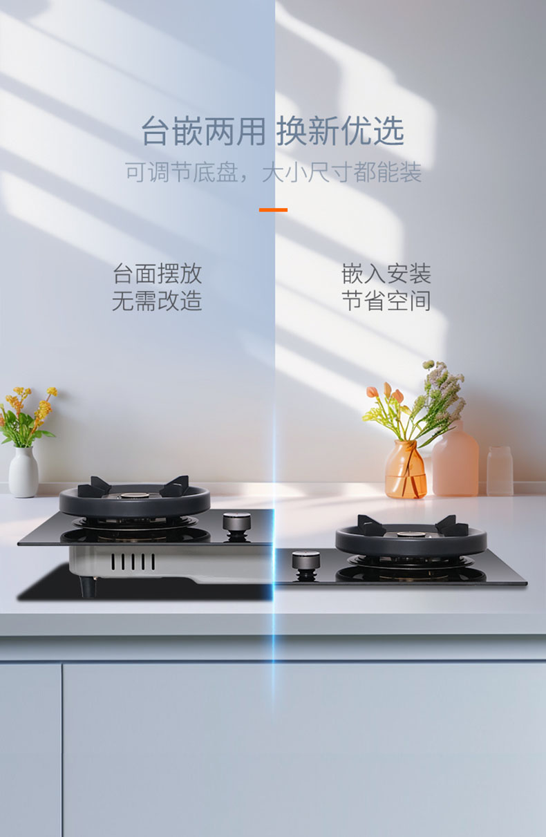- 台嵌两用式,台面直接放置,安装不受限;嵌入安装,完美贴合台面