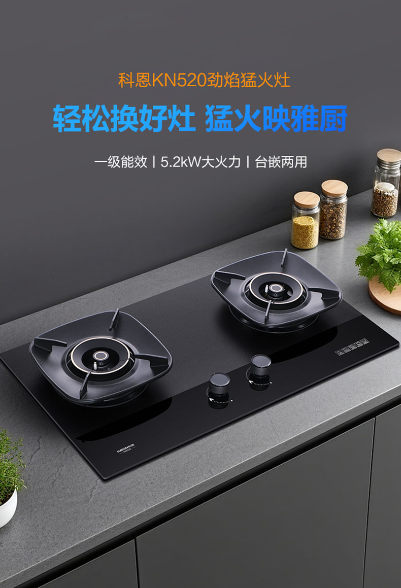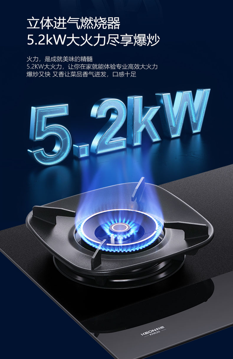 - 三喷引射,立体进气,5.2kW大火力尽享爆炒